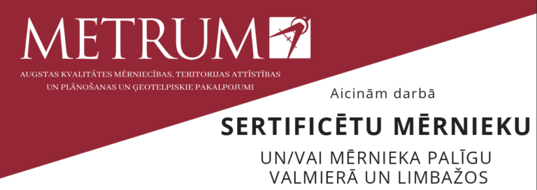 SIA „METRUM”, aicina darbā SERTIFICĒTU MĒRNIEKU UN/VAI MĒRNIEKA PALĪGU VALMIERĀ UN LIMBAŽOS